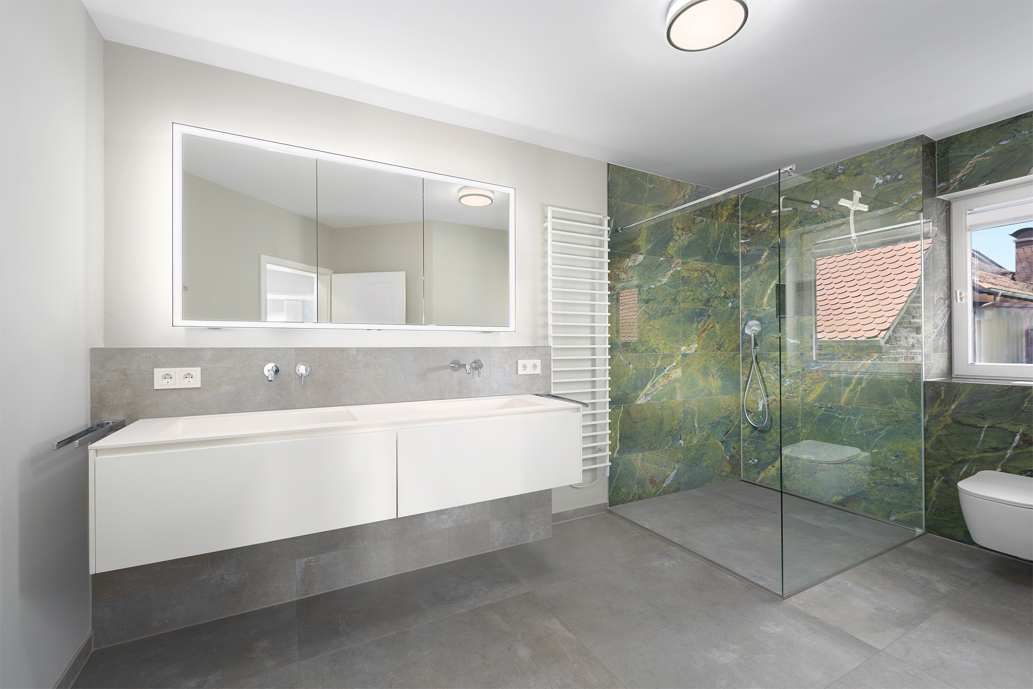 - Ausstattung des Bades Dusche Fenster